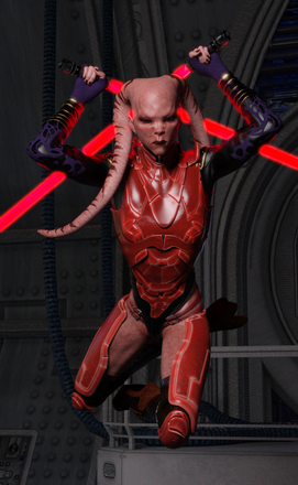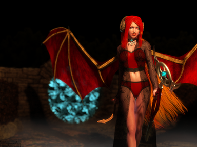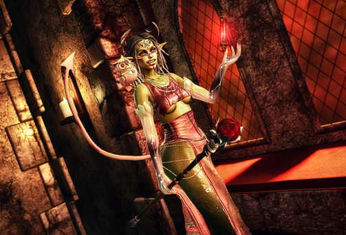 A quick render I did as a break between other projects. This is a character from another RP, a young Sylvan Elf forced by circumstances to live among humans. Unlike their more-refined kin, the High Elves, Sylvan Elves are widely considered barbaric and savage, living as they do in semi-nomadic tribes, lacking the social graces and refinement of their fellows. Brielle takes this quite a bit further, living as she does with urchins and orphans on the streets of the human city of Whitestone.Here, we see her in the courtyard of the temple of Mitan, a local goddess of charity and health, which runs a soup kitchen for the less-fortunate of the city. Brielle finds it a good place to get a meal, as well as a great place for marks, as many of the city's worthies are seen giving alms to the poor and performing other acts of public piety.