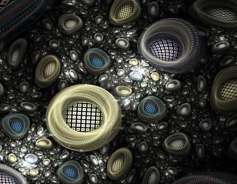 There are some smaller fractal designs I see that have been covered with the primary fractal. There are some fractals who have overlapped circles if you try to "fill" the holes in your imagination.