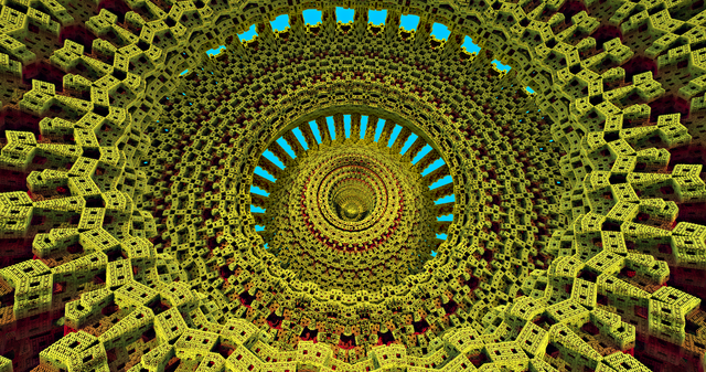 What makes me mesmerized on this one is this fractal looks more like of a 3D rose window made with only nothing but circles. The shining sun at the center makes it more brighter.