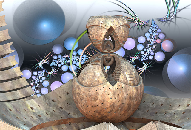 This very well designed ... when I saw this picture seems to me as part of a skeleton ... looks like the ribs of a human, but with a touch robotic ... this very well done ... I enjoyed this piece, there's something mystical ... mixed with futuristic. I do not know what program you use to make this image, like a lot of effects, color, reflections, I think this perfect ... maybe you could take advantage of this image and create something more complex ... maybe a mix humanoid robot ... or maybe none of this ... And any case is a piece that is worth seeing ... like all the others that you have done