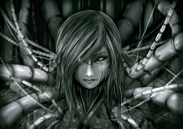 wow i like it, especially the cyborg girl. Nice drawing.