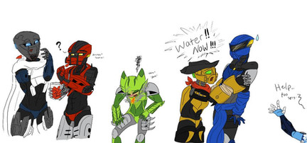 Added a few details to my modified toa mata since the last time I showed them, so I thought I'd post pics of them all (even the ones that aren't totally finished yet...)Tahu got himself a slightly...more..decent(?) update.