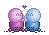 I'm pink and purple because i LOVE pink and purple, and he's blue, because that's his favorite color.