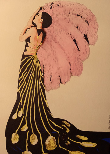 Second painting in the "bird" series. This time pheasant themed. I think the striped dress really works to help pull this off!Related content