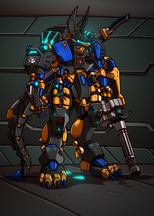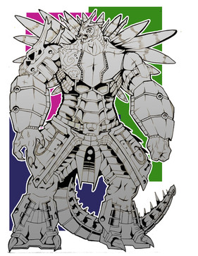 nice design. Like the weaponry and armour plating. The face looks pretty fierce. What abilities does it have?