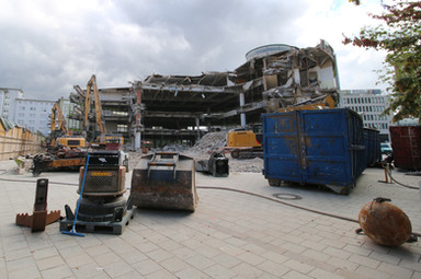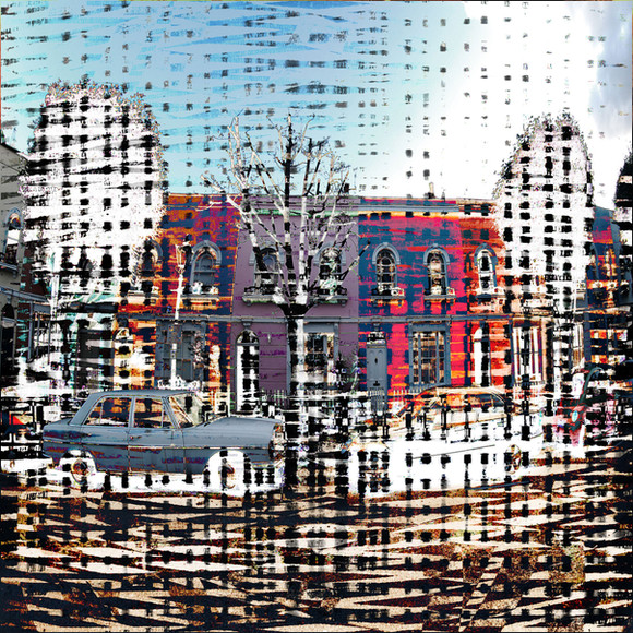 Made of two photos of a burnt-out ruin manipulated together.The picture is from Trondheim, Norway