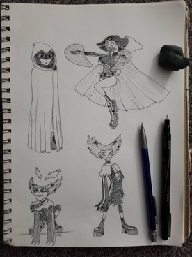 so for batman i made some changes to fit a more film noir tone i want to hit so i made his costume more cloth and i made the symbol bullet proof and the kinda cape fire proof