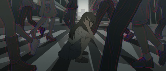 Ogromnie mi się podoba kolorystyka, taka chłodna zimna. NIESAMOWITY jest ten kontrast między postacią po środku a sylwetkami po bokach.