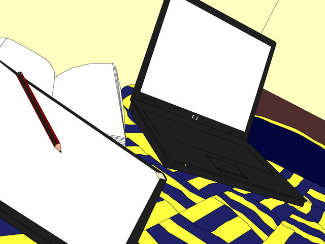 One thing I'd suggest is make the computer a slightly lighter shade of grey because its hard to see the keys and the other details, but other than that, nice work
