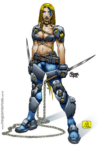 She's got more weapons than she knows what to do with Nice coloring as always, man