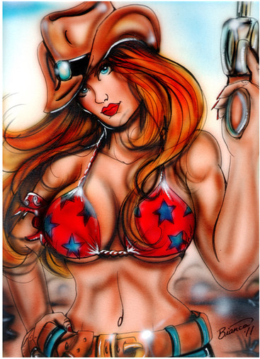nice work you did on that gun...and her guns..lol hermosa