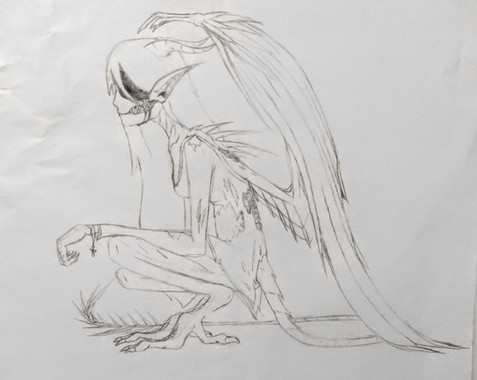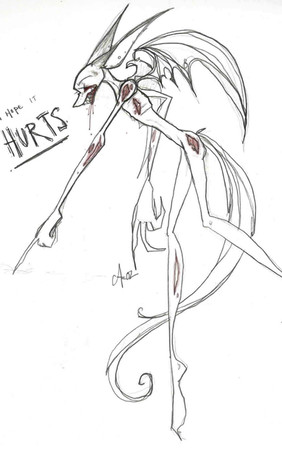 It's amazing what people do when they're blinded by an emotion. It's also amazing what you'll do to capture someone's heart.OKAY KIDS, EMO DRAWING MUCH? I was listening to the Sherlock Holms soundtrack with this one also (same song, can't remember the name lol). Not sure why it came out so...morbid. O____O I usually don't draw 'emoish' looking things anymore, but for some reason that song just spurted this guy out on paper and yeah...I really enjoy drawing him. xD; I like his original picture (located in scraps~) better though I think...and yes his wing thingers are supposed to be all mishapen, thank you. <3