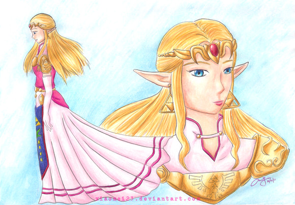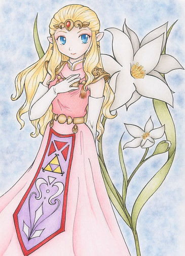 I did this right after I just beat Twilight Princess. I decided to make a lil fanart since I noticed there's not much of Princess Zelda. Mainly only Link. So, hope you like it, my scanner screwed the colors up as usual.Princess Zelda © Nintendo