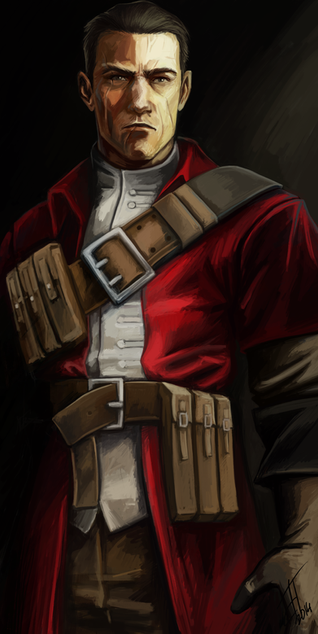 Ah, Colonel Autumn. In my opinion hes sympathetic, he doesn't follow President Edens genocidal orders. He'll use water to encourage recruitment among the Wastelanders. The Enclave may be 'evil' but they do have some sympathetic elements to them. Also you've done a fine job of drawing Autumn!Β