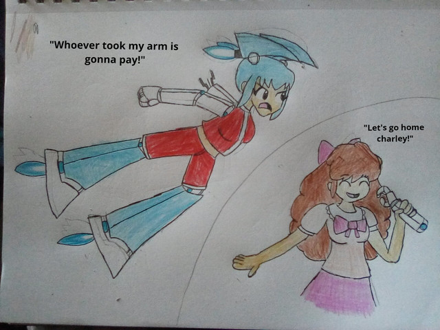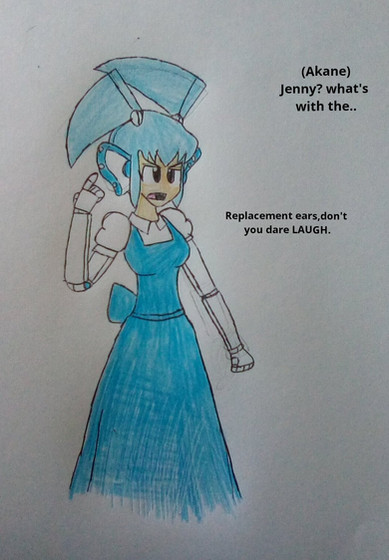 Aside for aki,meta woman had become friends with a other individual, that being a version of theo from her copy of the game ultra jump mania.Which her father had gotten for her along with a game Console,plus other video games for she could train in to use various Power ups and weaponry.