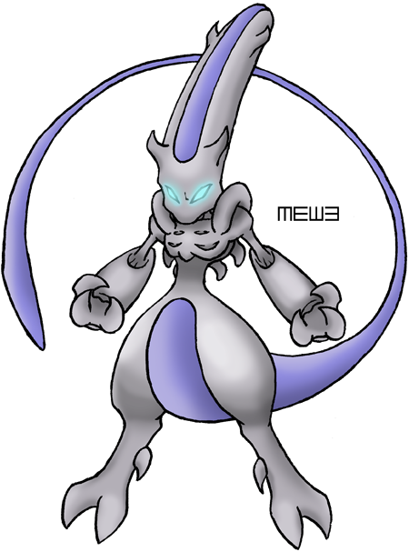 Thank you! I wanted my design to remain familiar to those who enjoy the design of both Mew and Mewtwo. Pokemon is a fairly conservative game, I think, and to deviate too far from Sugimori's forumla would be in bad taste. I did base it loosely off of the first Mewthree fake sprite back when the Red and Blue Games were out. [link]