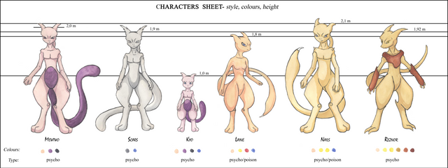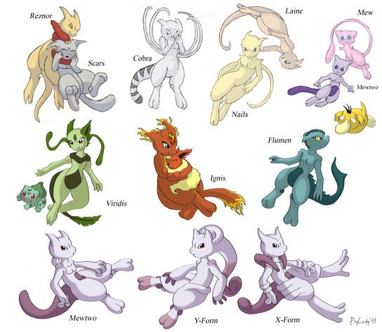 And finally you see Mewtwos split personalities and what they represent all together.Reznor, Laine , Kyo, Nails and Scars have been characters of my old mewtwo doujinshi "Sweet Dreams", which never was finished cause of many reasons. The story changed more than once and yeah lack of time and motivation to be honest. And now I can't look at the old comic without constantly facepalming me, it's really embarrassing to read which is the reason it's not online anymore.