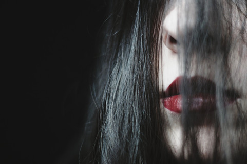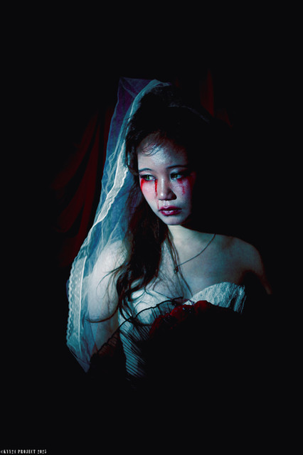 this is a very powerful shot...the blood tear and red lips add alot of intensity!