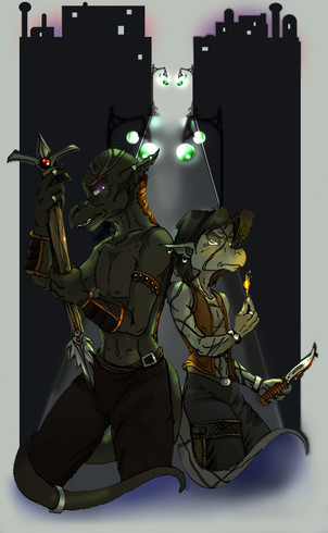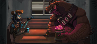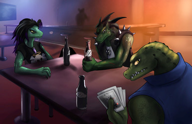 im still workin on commissions, but if i dont do sum artwork for myself i will go mad.freekazaur and drakk chill inside a poorly photomanipped bar scene.