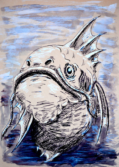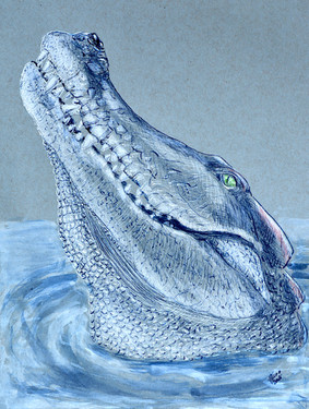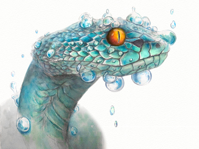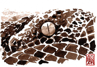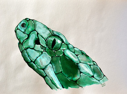 Sketched a Python head with fountain pen and washed it.