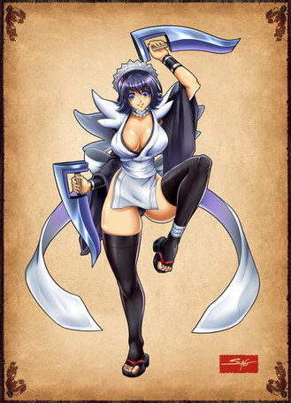 I never did get the chance to play the Samurai Showdown she was in. was she a damn ninja or a maid??? lol seriously I do wanna know O_o Anyway I like it, pose is vuuury contorted and I see your issue with it.She mind as well be an invertebrate lol. Still its good though