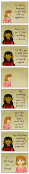 My original idea was that they would both say the suspicious thing first and then clarify that it wasn't all that suspicious after all, but it didn't play out that way.