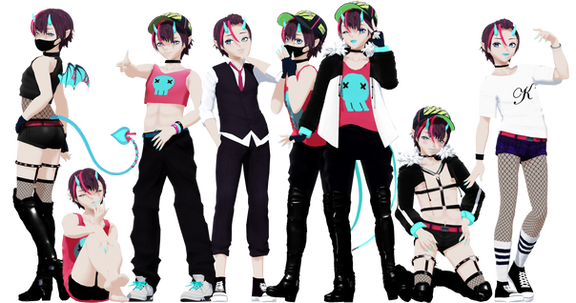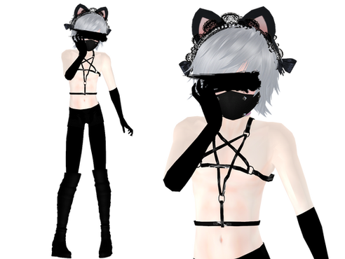 Formal: Base - TDA . Jjinomu, Face - TDA . Joshu0a926, Eye Texture - HiLoMMD, Hair - Illusion . RazgeXYZ, Ears - UnluckyCandyFox, Skulls - The-Witchmaker, Wings - MMD3DCGParts, Boots . Bracelets . Train . Belt - 黎鷹, Shorts - PON . Natsuka, Garters - Adrekiyo, Collar - Cloud9, Top - Jjinomu, Shoulder Ruffles - FMAfreak121