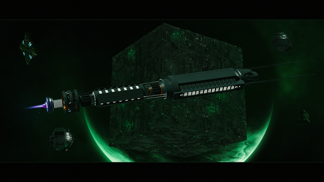 This Borg probe, was used in the early 23rd century. Scouting planets for intelligent life so they can be assimilated into the collective, the probes themselves can't assimilate but guide and the Borg.Borg probe created by