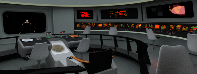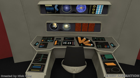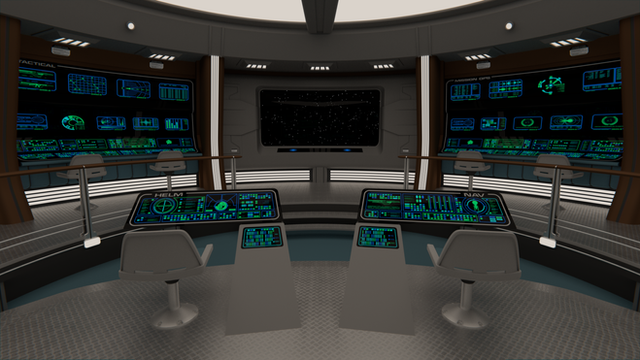 Another update to the NX refit bridge (Breathless) I added screens on the helm and nav console and a few buttons on the station around the bridge.TOS screen desktop created by