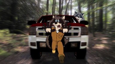 Yeah, only difference is that Ranger Dan and his kids don't get knocked out like Miles the donkey did to the farmer. Instead, they become friends with the raccoons.