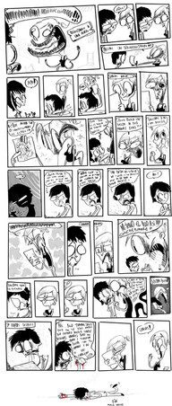 e notado que los comics de puklin desde que esta con su polola les falta odio, enojo, etc. me arriesgo a quedar como tonto y decir que mi teoria es que la mujer que vemos aqui es la representacion de esos sentimientos, el odio y la ira es parte de nosotros y hay quienes lo sabemos disfrutar (me incluyo porque es verdad, nada mas) no de una forma que dañe a los demas, sino que cuando vez que algo te cause enojo, logras sentirlo de una forma que no te estrese. Yo odio por ejemplo muchas cosas, pero medito sobre ello y porque me da rabia, si esa ira es fundamentada o no, etc, mi polola me encontraba muy negativo porque le contaba todo lo que me molestaba y me di cuenta que no es como yo, asi que solo me quedo guardarmelo para mi y rara vez lo dejo a la luz, sorry si me fui en la volada XD, me voy a almorzar, bye.