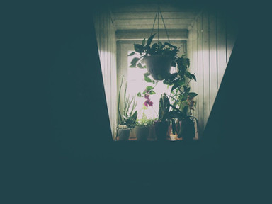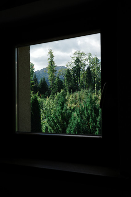This photograph sets a beautiful mood of coolness and serenity, inviting warm tones, and a sense of quiet.. The owner of the home has created a little garden sanctuary indoors that yet draws the eye out upon the lovely gardenscape outside, without having to enter it oneself. A gift. Marvelous! Contrast, exposure, framing, composition, and color are all excellently balanced. The scene is not so perfectly arranged that it looks artificial, it has the reality of a place actually lived in yet all such distractions are in dimness and the focus is on atmosphere and the view out the window. Well done!