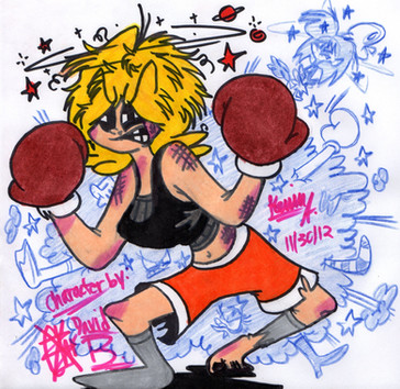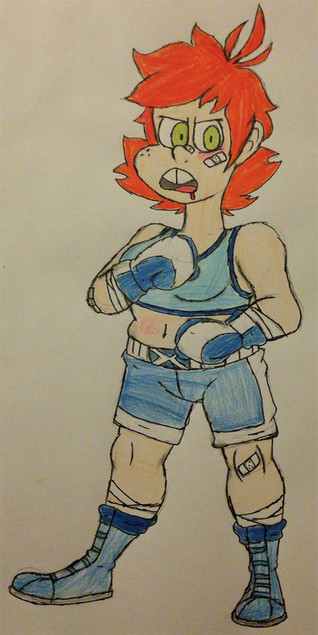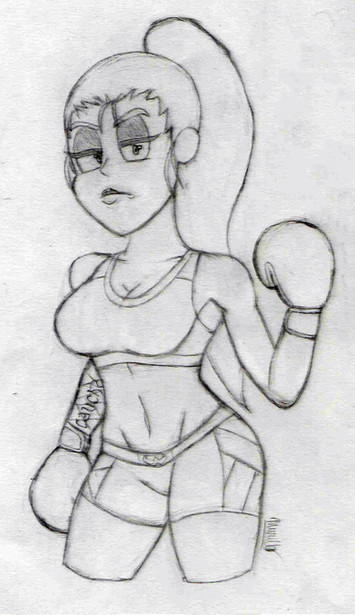 I tried to make her look like she just left a recent round with a black eye and a bloody nose, but now she's ready to get back in the ring! I know her legs look a bit weird. I was trying to make her look a bit muscular- after all she is a boxer.