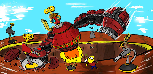 My take on the final boss battle of Rayman 2: The Great Escape, with a cartoony style.Related content