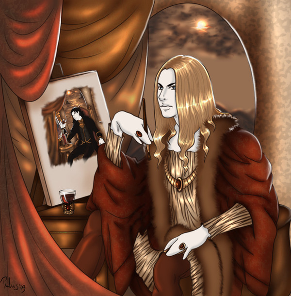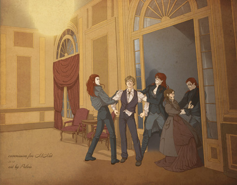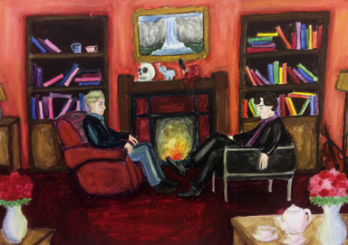 I used a scene from the movie as a reference - it felt so cozy and warm i could not resist! I altered their poses a little bit and added some elements - like The Lady of Justice (i think that it's what Charles always wanted, however idealistic it might be) and Frankenstein by M.Shelly on the floor near Eric (the metaphor from the movie).