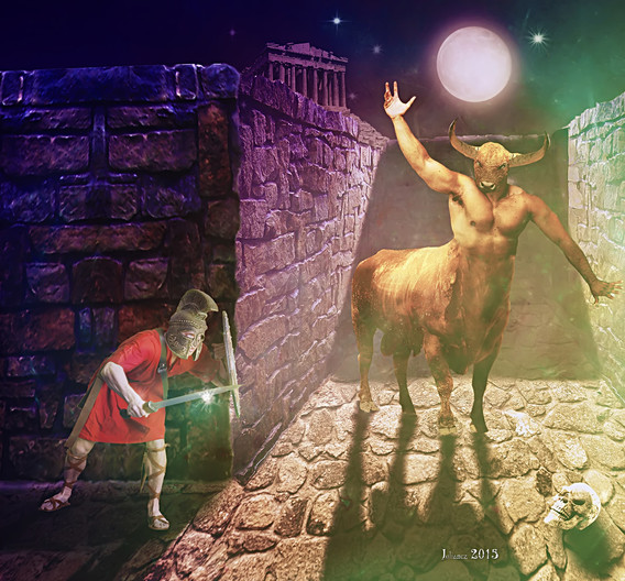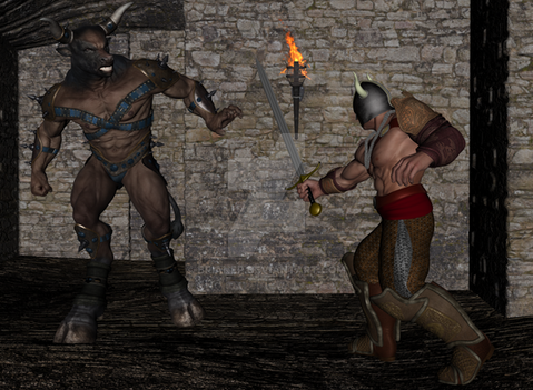 Nice, hunky Minotaur. Theseus should drop the plan for escaping with Ariadne, and spend the time on Crete, here.