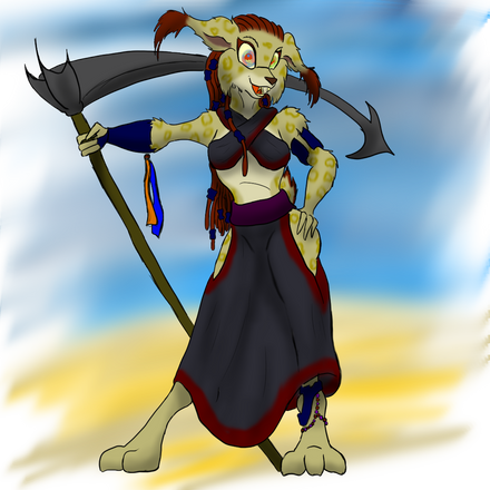 The final member of the trio of Gladiators belonging to flafty!This outfit is both built for speed and distraction. The cloth is just part of a little dance at the beginning, to be tossed aside before the fight. More to hype up the crowd than anything.
