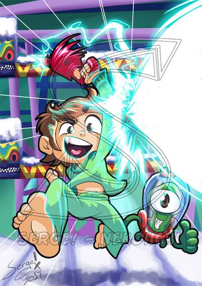 Ahahaha it wasn't intentional! I think I discovered this was happening midway through drawing this. But I was too far in to change it so I just kept going and hoped no-one would notice! XD Not that I mind much, though. Sonic is great and Kid Vid is great so it works out!
