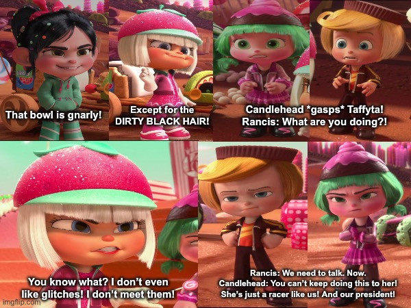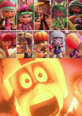 #fanart #disney #angry #bullies #sugarrush #villains #candlehead #wreckitralph #crumbelinadicaramello #gloydorangeboar #jubileenabingbing #rancisfluggerbutter #snowannarainbeau #sugarrushracers #taffytamuttonfudge #adorabeezlewinterpop #mintyzaki #swizzlemalarkey #villainousbreakdown