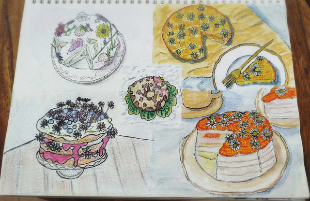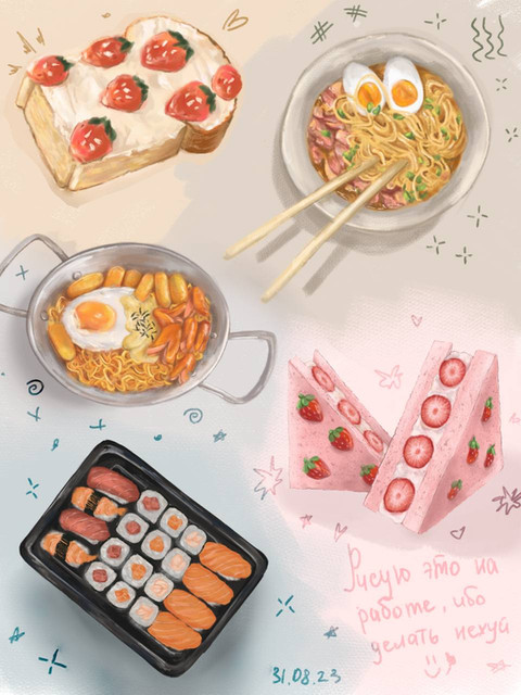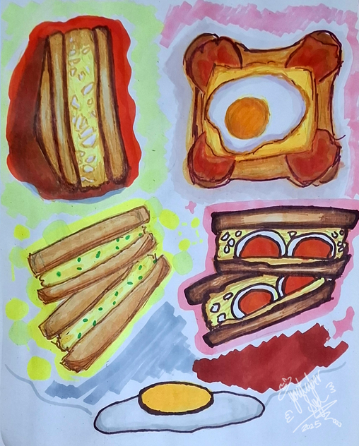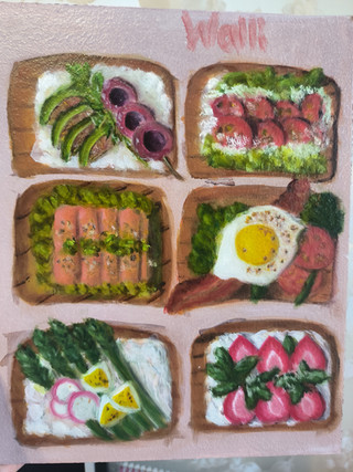 #traditionalart #acrylic #watercolour #butterfly #egg #food #handmade #picnic #sandwich #sandwiches #scraping #strawberry #summer