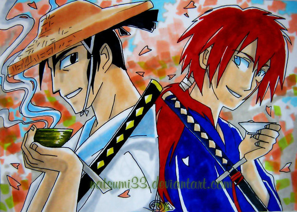 i'm not a yaoi fan, so i didn't watch the movie >.> neway, why Kaien looked so sad here? O_O;;; and Byakuya....he looks weird ^-^;; bah!! ignore me >.< *whipped by random logs*