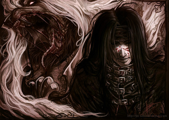 Oh, God the eyes freaked me out! It's like he has none of his own, but he holds the eyes of other people in his hands, which is really creepy and probably symbolizes something. Disturbing in a good way.