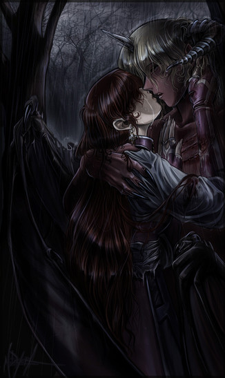 I love that soundtrack, especially the song I quoted lyrics from. It's wonderfully dark for a disney movie. I can see it fitting really well as you painted this. I love the texturing on the horns, hair, wings and robes. And the lighting is great. The sepia quality looks wonderful as well