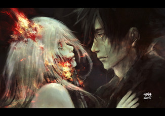 This is my OTP. I rarely see art that does this couple justice, and even more rarely is it art that is so dark and cathartic that I will pardon for being "unhealthy" solely because it is so sheerly beautiful. You have SO succeeded, if I may humbly say. This is thrilling to look at. No, rather, to EXPERIENCE. It's not just looking, somehow it involves all the senses. It's ENGULFING. I'm not trying to be a bullshitty art critic or anything here, that's my visceral reaction.