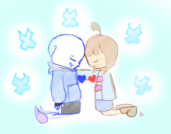 SO PRETTY!!! LINDOOO!! amo a expressao do sans! Olha a carinha apaixonada dele!! AAAA LOVE IT! obrigaduxa pela fanart!!! <33