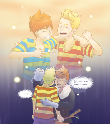 I've been meaning to draw this scene since I first played Mother 3, but just now got along to it. The posing for the hug was based off a picture I found on Tumblr.
