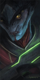 So I'll change it up by complimenting the face. Protheans look a bit difficult to draw, I'm too shy to try, but you're doing great with them.