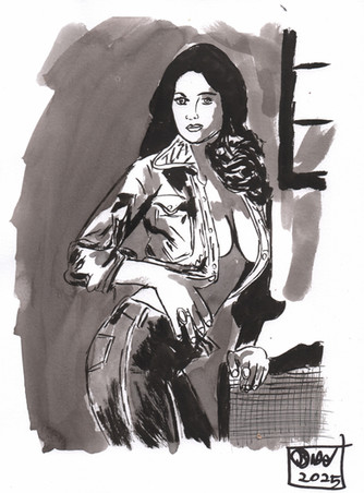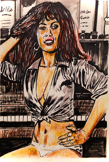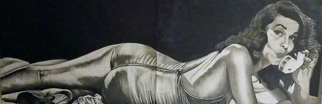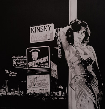 acrylic on canvas,(original painting)100 x 80 cm of vanessa ferlito starting her lap dance in the movie death proof.Related content