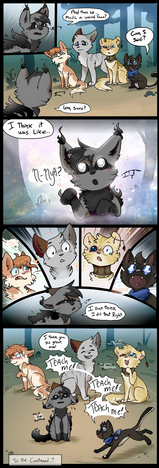 Unable to spend her free time running around in the rim to practice seeking due to her condition, Shellpaw busies herself by keeping an ear out for important information that needs sharing to other cats around Haven. Generally running to and fro for tiny messages like crafts being finished, or a specific cat looking for a certain kind of resource.She also uses her loud voice to help with advertising cats looking to sell things, and spends her newfound literacy skills making signs to express her avaiablity, clarifying if anyone is to ask that her services are only applicable within haven itself, sadly. But she'll do her best!!
