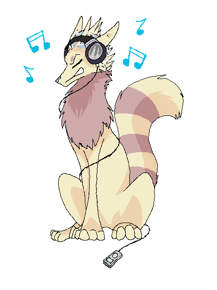 Bio: Radio is a small feline like creature who is able to repeat anything he hears to every detail, however he cannot speak for himself so his communication methods are by quoting bits of songs and stringing them together to get his point across. He is male, however because of his extraordinary ability to immigrate any song he's heard, he can perfectly mimic songs with female singers as well. The markings on his fur glow, do not change shape, but can change color to fit his mood, however he'll often just sit around and change colors for the fun of it, as seen here.